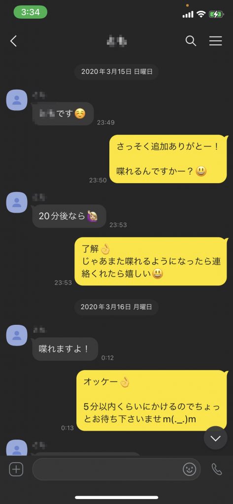 - 22:35~一度カカオを切って濡れたパンツの写真を撮って送らせる