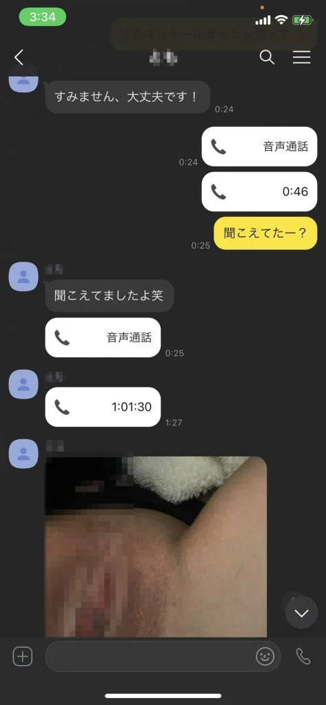 22分30秒あたりで、カカオでの通話を切らせてパンツとおまんこの写真を撮らせて送ってもらってます。