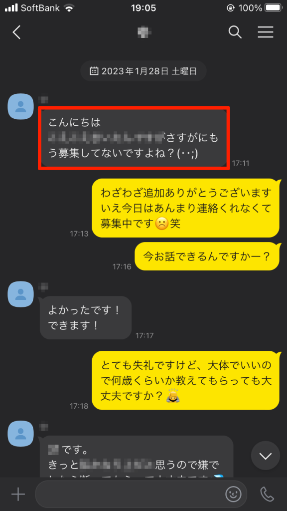 ちなみにが出会い系サイトで募集した時の今回の女の子とのやり取りはこんな感じです。