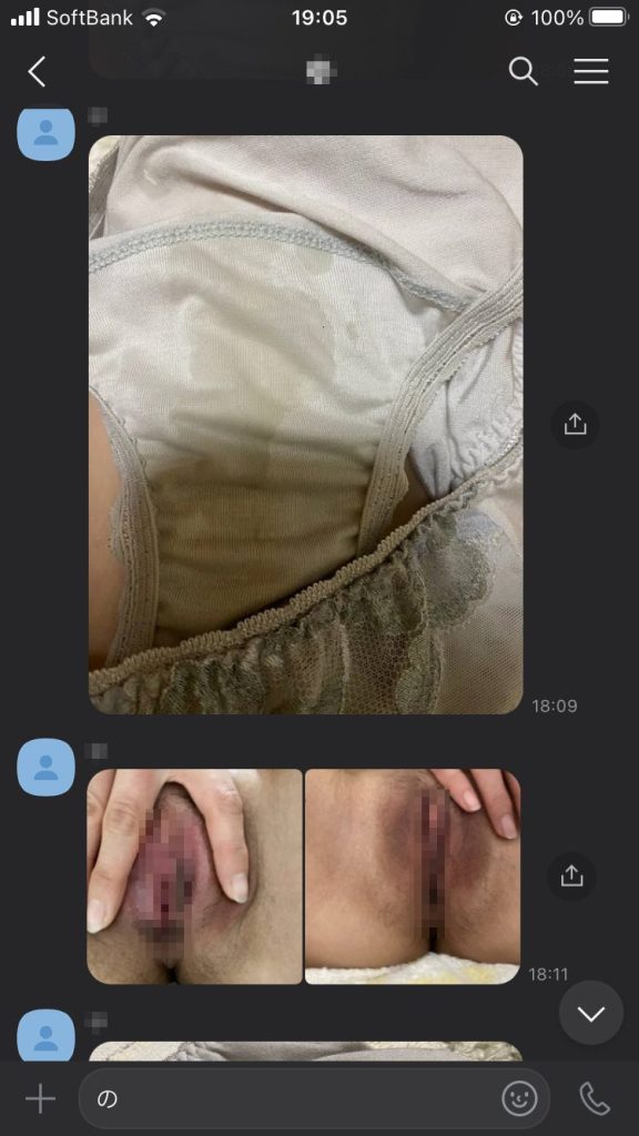 最後には「いっぱい潮吹きした証拠を見てください」と自らお尻の下に敷いてた少し潮のついたパンツの写真まで送ってくれました。