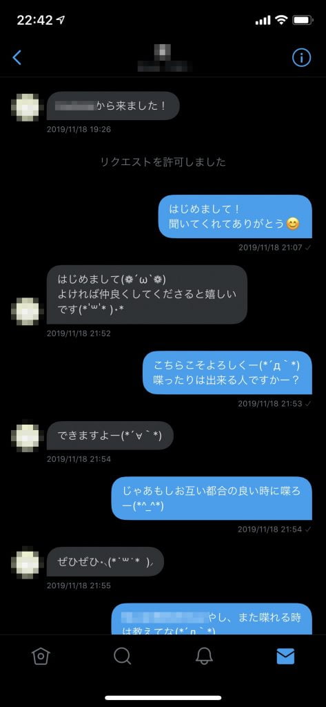 この女の子のオナニーのネタは音声で、音声を聞いて想像してオナニーするのが好きなようです。僕の投稿した音声を聞いてくれて、下記のようにTwitterからメールがきました。